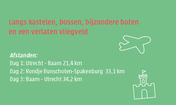 Ten noorden van Utrecht stikt het van de kastelen, forten, landgoederen en paleizen. Een aantal kom je onderweg tegen. Via fijne fietspaden met weidse uitzichten zoef je door naar spannende bospaadjes in de verkoelende bossen van de Utrechtse Heuvelrug. Er zijn pannenkoekenboerderijen, en nog veel meer horeca. Je overnacht op natuurcamping De Zeven Linden in Baarn, in een prachtige omgeving.